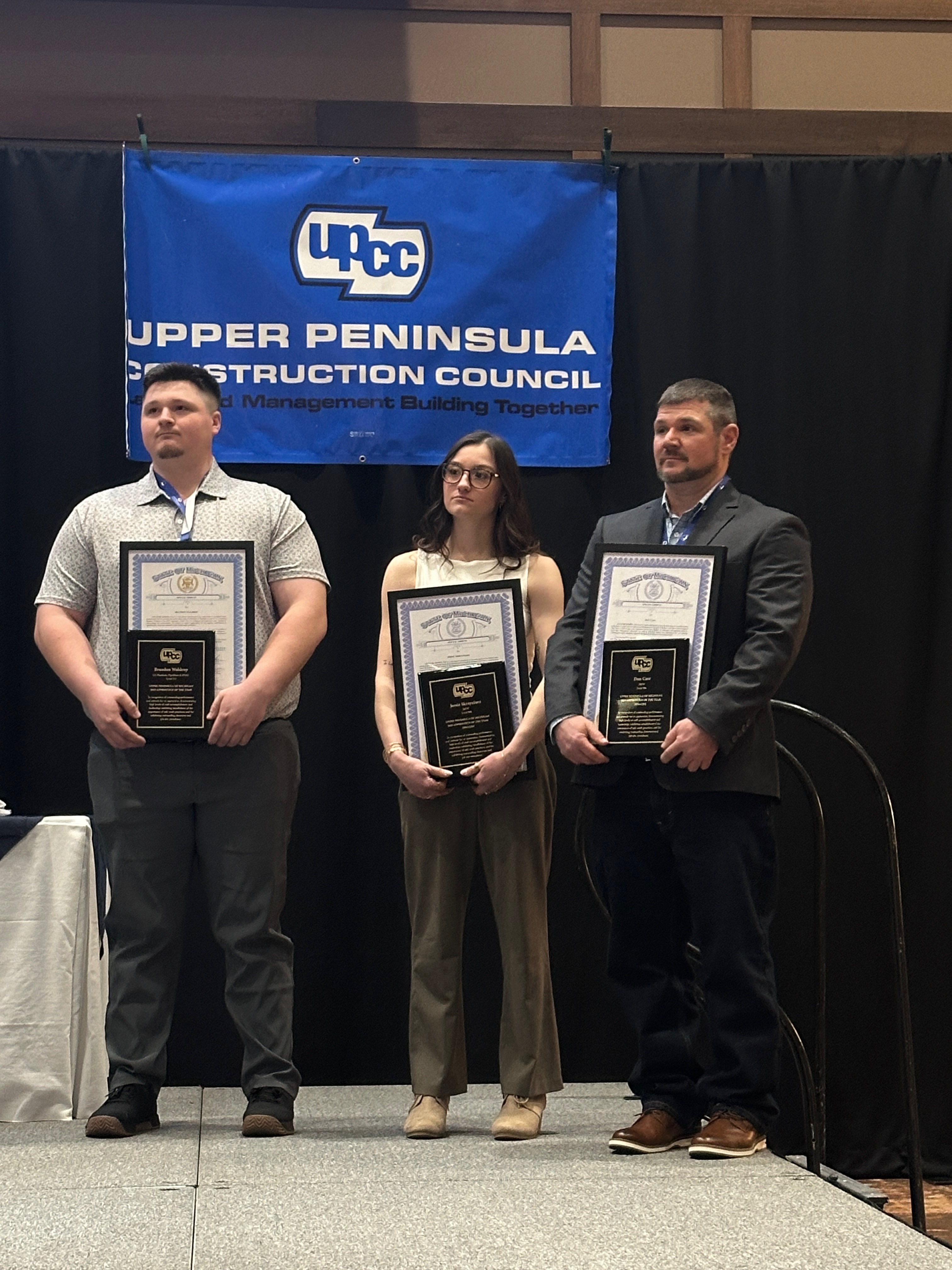 “The Apprentice of the Year banquet celebrates the next generation of skilled trades professionals who are building the future of our industry,” said UPCC Executive Director Mike Smith. “Each year, we see incredible dedication from apprentices across the U.P. who are learning their craft, supporting their fellow workers, and preparing to lead the next generation of the trades. Congratulations to Brandon Waldrop, our 2025 Apprentice of the Year, and to finalists Jersie Skrzyniarz and Dan Cass, and all the nominees who represent the very best of the trades.”